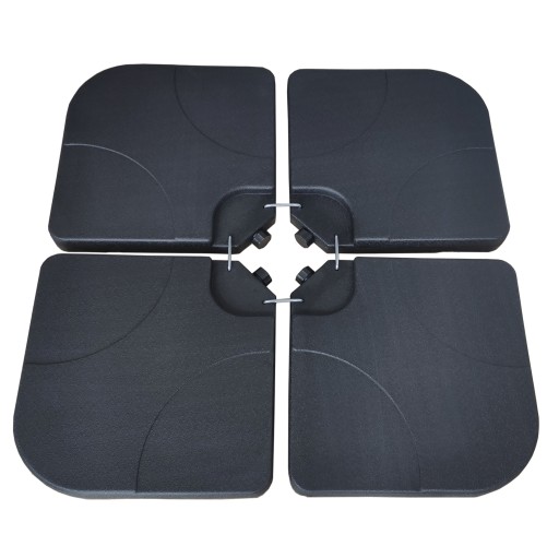Zestaw składa się z 4 płyt o wymiarach 50x50x7,5 cm. Płyty można łatwo napełnić piaskiem lub wodą, aby obciążyć stojak na parasol.