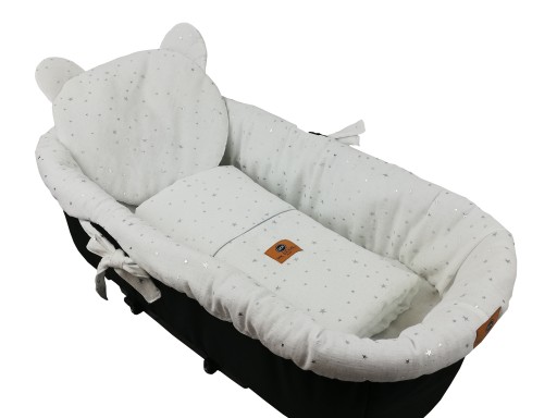 - wypełniony mięciutka włókniną antyalergiczną o o gramaturze 100 g/m2 co sprawia że jest miękki , elastyczny, miły w dotyku a przy tym idealnie dopasowuje się do gondoli.