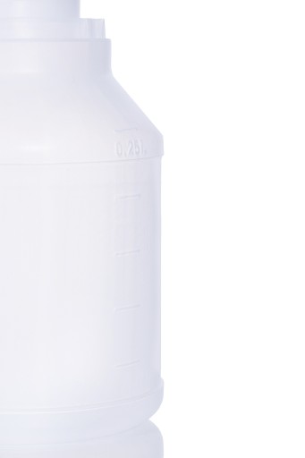 Бутылка 250 мл с крышкой из полиэтилена высокой плотности.