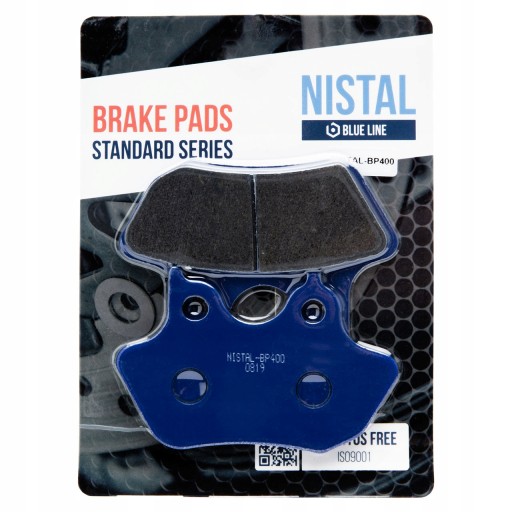Klocki hamulcowe marki NISTAL to bezpieczny i trwały produkt posiadający doskonały stosunek jakości do ceny. Okładzina to organiczny materiał cierny wzbogacony dodatkami poprawiającymi hamowanie. Klocki z niebieskiej serii BLUE LINE dzięki zawartości 20% miedzi, zapewniają dobre odprowadzanie ciepła, nie szarpią i nie piszczą podczas hamowania. Zapewniają łagodne zużywanie się tarczy. Sprawdzą się również w cięższych motocyklach do rekreacyjnej jazdy. Wytwarzane zgodnie z certyfikatami: ISO 9001:2008, ISO 14001:2004, OHSAS 18001:2007.