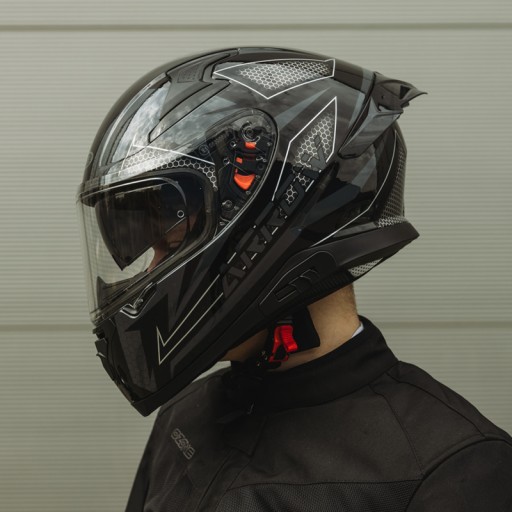 - Kask wyposażony jest w wiele praktycznych rozwiązań, takich jak blenda przeciwsłoneczna, szybki i łatwy w obsłudze system demontażu szyby, przygotowane miejsce pod interkom, wizjer anti fog oraz szybę odporną na zarysowania. Możesz cieszyć się pełnym komfortem podczas jazdy.