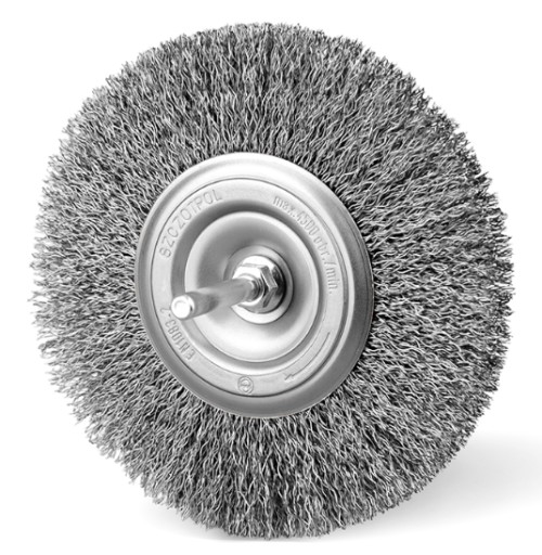 Szczotka tarczowa z trzpieniem 6 mm wykonana jest z drutu stalowego.