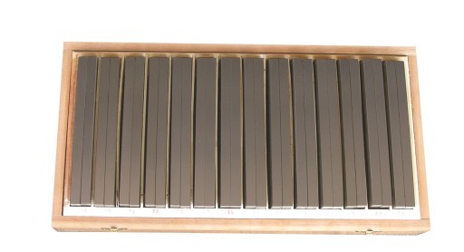 Płytki wykonane ze stali specjalnej, drobno szlifowane, hartowane para z danego wymiaru, tolerancja ±0.005 mm, równoległość 0.010 mm, dokładność ±0.005 mm, w drewnianym opakowaniu.