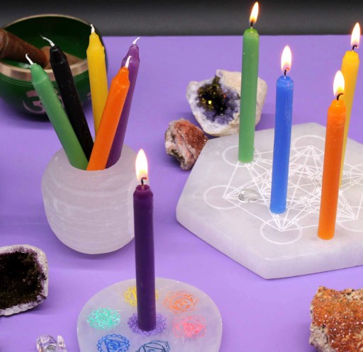 Świece rytualne służą do wzmacniania i uwalniania energii, mogą być pozostawione (niezapalone), aby promować pozytywne wibracje, lub używane (zapalone) w rytuałach i zaklęciach.