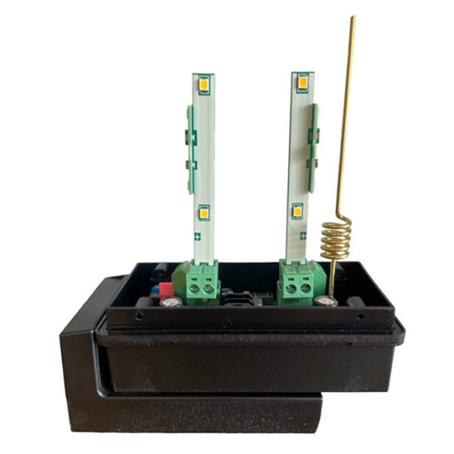 Lampa posiada także zewnętrzną antenę dla częstotliwości 433,92 MHz, co zauważalnie zwiększa zasięg działania urządzeń. Dzięki tej antenie można znacznie powiększyć zasięg działania pilotów, co ułatwia kontrolowanie bramy z dalszej odległości.