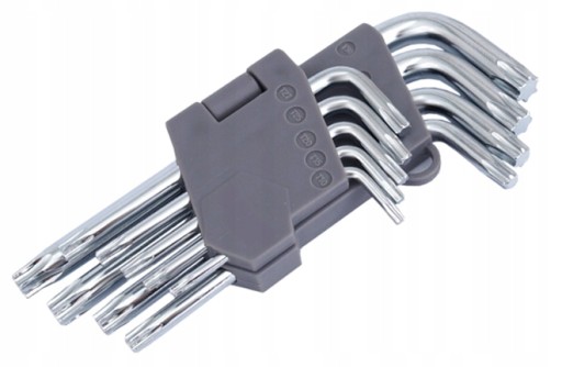 Zestaw 9 kluczy TORX- gwiazkowych wykonanych ze stali chromowo-wanadowej.