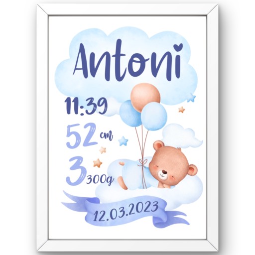 METRYCZKA DZIECIĘCA dla chłopca + ramka