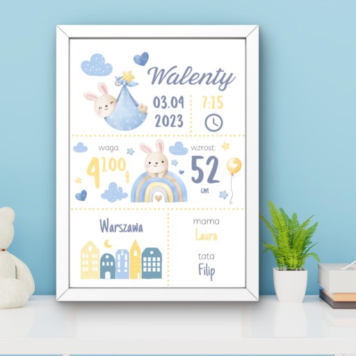 - Metryczka to personalizowany plakat zawierający wszystkie ważne szczegóły z dnia narodzin maluszka.