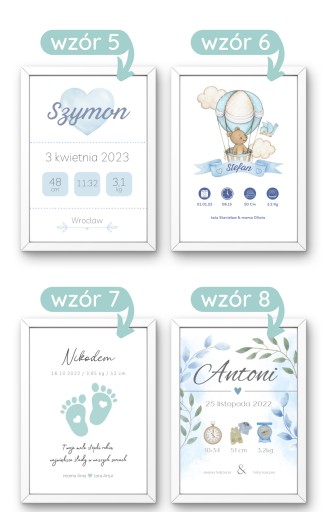 3. W uwagach do zakupu należy podać wszystkie niezbędne dane: numer metryczki (czyli wzór), imię dziecka, data i godzina narodzin, wzrost, waga, miasto.