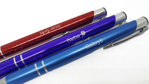 Na długopisach grawerujemy dowolny tekst, grafikę na podstawie przesłanych nam danych na adres e-mail. Grawer jest trwały, wykonany przy użyciu lasera CO2. Na tej aukcji grawer na każdym długopisie może być inny. Wkład w długopisach jest NIEBIESKI.