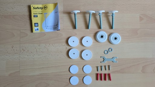 Barierka nadaje się do drzwi lub przestrzeni ściennych od 73 cm do 80 cm i może być przedłużona za pomocą dostępnych oddzielnie rozszerzeń do 136 cm ( można dokupić na innych aukcjach )