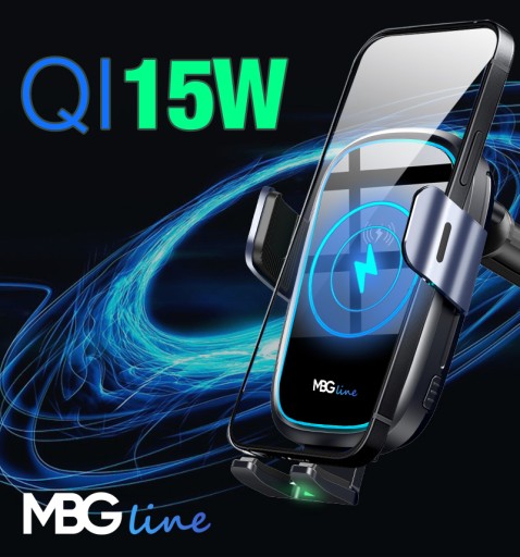 ORYGINALNY AUTOMATYCZNY UCHWYT SAMOCHODOWY Z BEZPRZEWODOWĄ ŁADOWARKĄ INDUKCYJNĄ O MOCY 15W OD MBG LINE!