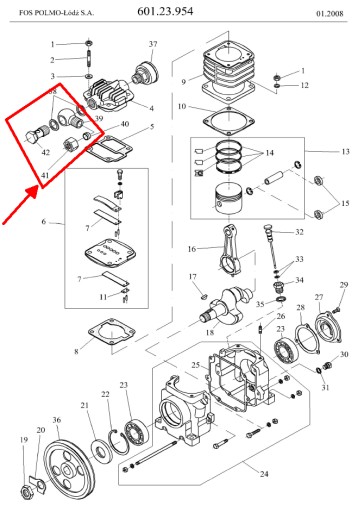 w nawiasach kwadratowych podano ilość szt. występujących w danym typie sprężarki, * gwiazdką zaznaczono część podlegającą bezwzględnej wymianie przy naprawie: