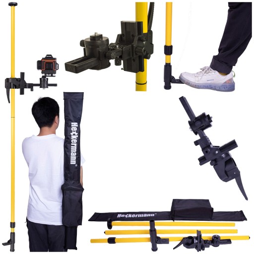 Tyczka marki Heckermann przeznaczona jest do laserów poziomujących liniowych oraz krzyżowych. Zamocowana między sufitem a stropem pozwala na korzystanie z poziomicy laserowej na każdej wysokości, a tym samym znacznie ułatwia prace remontowo-budowlane.