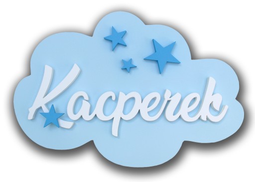 Personalizowane imię Twojego dziecka na chmurce z pewnością zrobi wrażenie na każdym gościu.