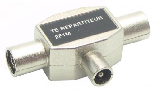 ROZDZIELACZ typu T ( trójnik) sygnału radiowego Coax 1x wtyczka -2x gniazdo RTV