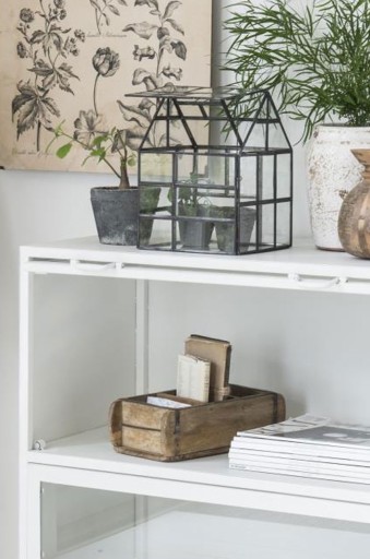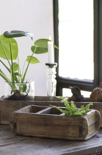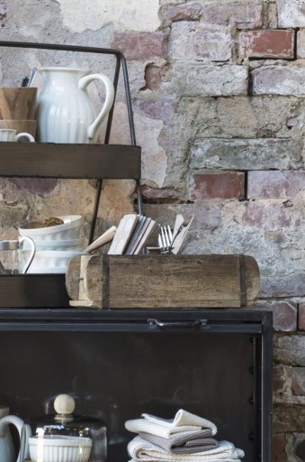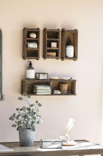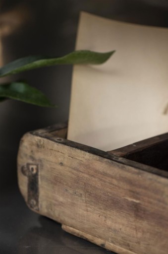 Piękny, wyjątkowy drewniany rustykalny schowek będzie doskonałym pojemnikiem do przechowywania, czy też wiszącą półką. Drewno użyte do wykonania tego pojemnika/półki pochodzi ze starego recyklingowanego drewna, które swoje pochodzenie bierze z drewnianych form używanych w Indiach do wyrobu ręcznie formowanych cegieł. Glina jest wkładana do formy, gdzie jest prasowana i wstrząsana, a następnie cegła jest wyjmowana, aby mogła leżeć na słońcu i wyschnąć – wtedy forma znowu jest teraz gotowa do wykonania następnej cegły. Dlatego wszystkie półki z tej serii Ib Laursen są unikalne pod względem rodzaju drewna, wieku i wyglądu.
