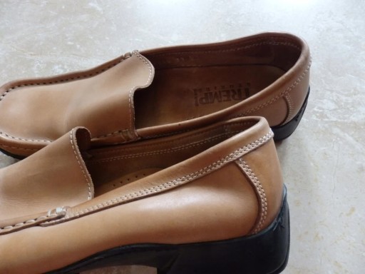Przedmiotem aukcji są jasno brązowe mokasyny marki