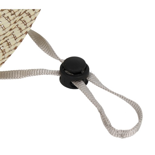 Wyposażony w szerokie rondo chroniące przed promieniami słonecznymi oraz praktyczny ściągacz ułatwiający utrzymywanie się kapelusza na głowie.