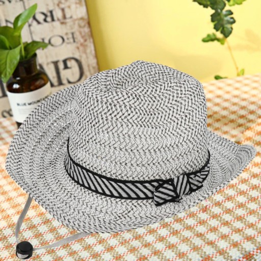 Dzięki sznureczkowi kapelusz dobrze trzyma się na głowie.