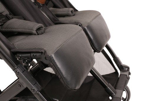Wózek ma też przemyślany system pasów bezpieczeństwa (dopasowanych również dla noworodka), wyprowadzonych z różnych punktów. To pasy naramienne, biodrowe oraz pas krokowy. Za pomocą klamry tworzą wymagany przez normę system zapięć. Dzięki niej łatwo i szybko zapniesz obydwa maluchy.
