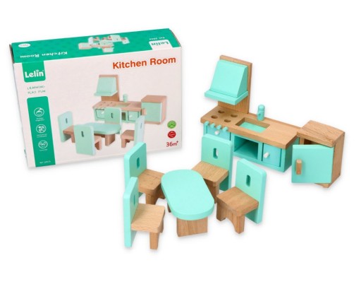 ДЕРЕВЯННАЯ МЕБЕЛЬ ДЛЯ КУКОЛЬНОГО ДОМИКА, КУХНЯ LELIN