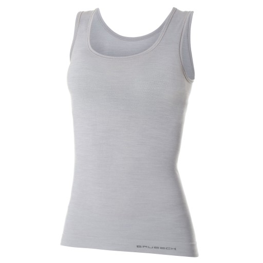 Koszulka damska bez rękawów BRUBECK COMFORT WOOL Bielizna termoaktywna WEŁNA MERINO popielaty