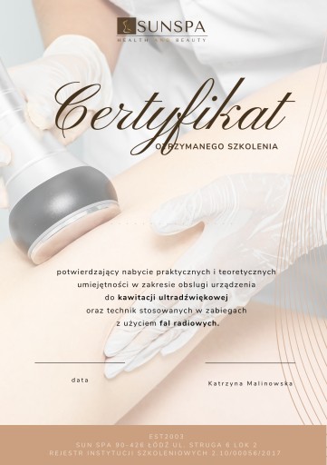 otrzymasz Certyfikat oraz link do filmu instruktażowego