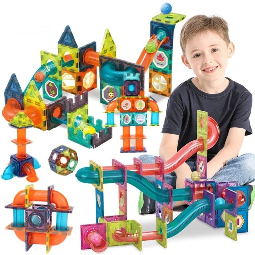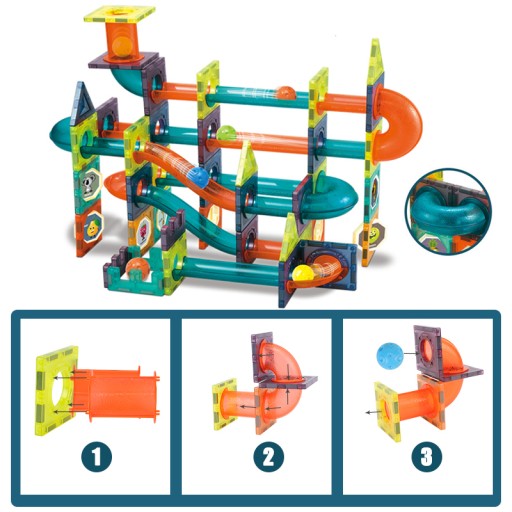 Zestaw magnetycznych klocków do budowy toru kulkowego 96 elementów