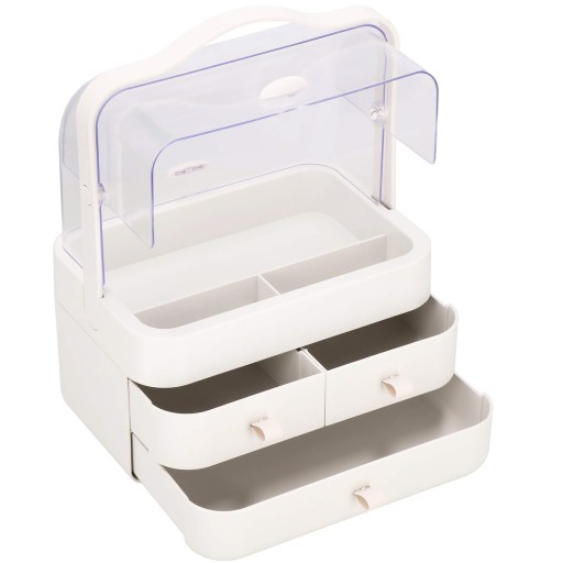 Szkatułka w całości wykonany jest z tworzywa sztucznego. Materiał jest bardzo łatwy w utrzymaniu w czystości, w przypadku gdy rozsypie Ci się puder lub bronzer wystarczy szufladki przetrzeć zwilżoną szmatką. Organizer posiada przeźroczystą gablotkę, dzięki której masz podgląd na przechowywane akcesoria.