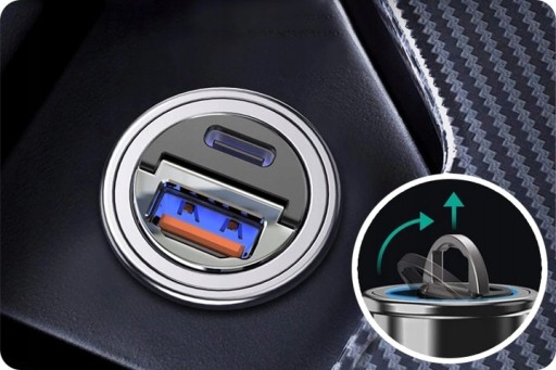 Kompaktowa, mini ładowarka samochodowa o dużej mocy • USB / USB Typ-C •