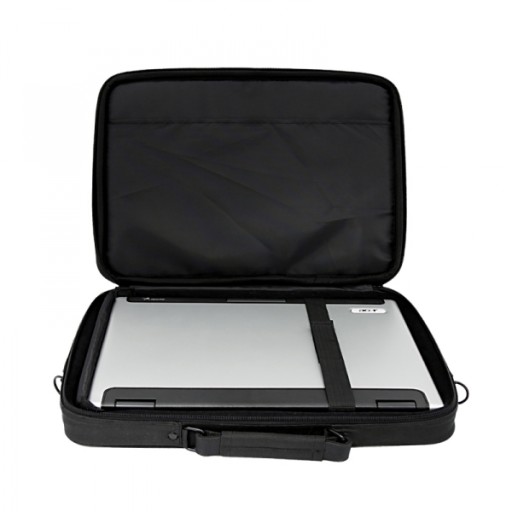 ✅ Torba wykonana jest z wysokiej jakości materiału. Ścianki boczne są wzmocnione listwą metalową, a od wewnątrz wyłożone miękką warstwą pianki skutecznie chroniącej notebook przed uderzeniami i zarysowaniami.