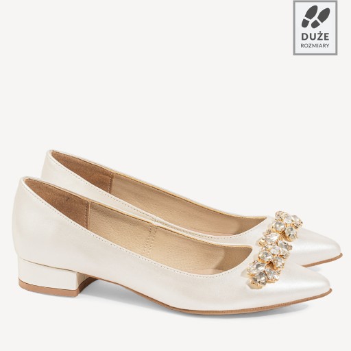 Ślubne perłowe balerinki z ozdobą Anita ivory