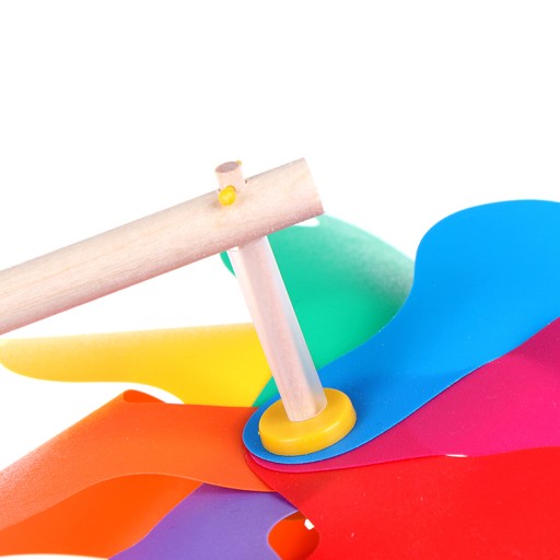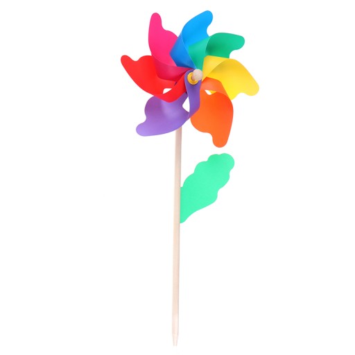 Piękny kolorowy wiatraczek sprawdzi się jako zabawka oraz ozdoba np do pokoiku dziecięcego.