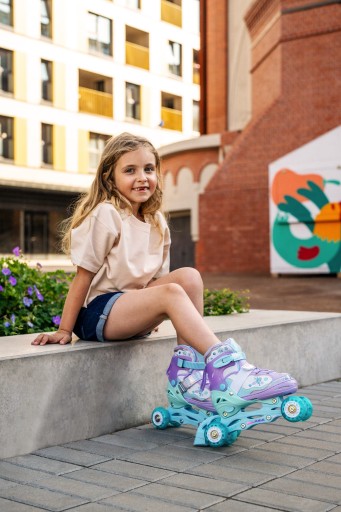 Do zmiany rozmiaru niepotrzebne są żadne narzędzia. Wystarczy nacisnąć przycisk i rozsunąć przednią skorupę buta. Dzięki temu rolki posłużą na wiele sezonów i zawsze będą dobrze dopasowane do rozmiaru stopy.