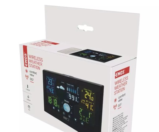 12/24 godzinny format czasu: tak|barometr: tak|budzik: tak, 2×|ciągłe podświetlenie: tak|częstotliwość: 433 MHz|data: tak|deszczomierz: nie|dodatkowe czujniki: 3 (E06018)|fazy Księżyca: tak|jednostki temperatury: °C/°F|kalendarz: tak|min. i maks. temperatura: tak|możliwość zawieszenia na ścianie: tak|opakowanie: 1 szt., pudełko|ostrzeżenie temperaturowe: tak|podświetlany kolorowy wyświetlacz (black mask): tak|podświetlenie LED wyświetlacza: tak|podświetlenie wyświetlacza: tak|powtarzane budzenie: tak|produkt: stacja meteorologiczna|prognoza pogody: tak|projekcja: nie|sonda przewodowa do czujnika: nie|strefy czasowe: tak|temperatura wewnętrzna: -10 °C do +50 °C, rozdzielczość 0,1 °C|temperatura zewnętrzna: -50°C do +70°C, rozdzielczość 0,1°C|trend ciśnienia: tak|trend temperatury: tak|ustawianie wysokości nad poziomem morza: tak|wiatromierz: nie|wilgotność wewnętrzna: 1 % do 99 % RH, rozdzielczość 1 %|wilgotność zewnętrzna: 1 % do 90 % RH, rozdzielczość 1 %|wykonanie termometru: bezprzewodowe|wymiary czujnika: 15 × 62 × 100 mm|wymiary głównej jednostki: 17 × 192 × 127 mm|wymiary wyświetlacza: 168 × 93 mm|zasięg czujnika: do 100 m|zasilacz sieciowy: tak, 5 V DC/300 mA (w zestawie)|zasilanie czujnika: 2×1,5 V AAA(brak w zestawie)|zasilanie jedn. głównej: 3×1,5 V AAA(brak w zestawie)|zegar: DCF (sterowany sygnałem radiowym)