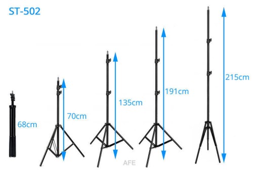 Teleskopowy mechanizm rozkładania minimalizuje wymiary statywu po złożeniu oraz pozwala na jego błyskawiczne rozkładanie lub składanie, dzięki czemu uzyskamy szeroki zakres pracy (regulowany jest płynnie na dowolnej wysokości w zakresie 70-215 cm).