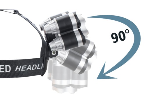 Wygodny, rozciągany pasek świetnie dopasowuje się do kształtu głowy gwarantując przy tym komfort podczas używania latarki, nawet przez długi czas. Regulacja pozwala indywidualnie dopasować długość paska. Regulować można również kąt padania światła, zakres regulacji to aż 90°!