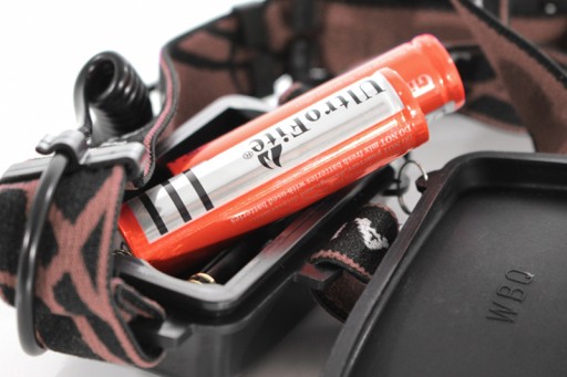 Latarka zasilana jest dwoma akumulatorami 18650 które znajdziesz w zestawie. Aby włożyć je do środka, należy zdjąć pokrywę na tylnej części latarki i wpiąć akumulatoryzwracając uwagę na odpowiednią polaryzację.