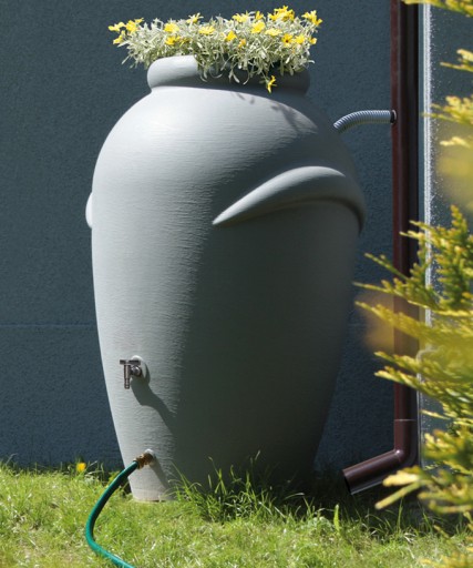 Estetycznie wykonany, dekoracyjny zbiornik deszczowy Prosperplast Aquacan Baby o pojemności 210L. Wygląd inspirowany antyczną sztuką użytkową - zbiornik Amfora.