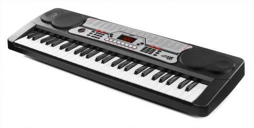 MAX KB7 to 54-klawiszowy to wysokiej jakości keyboard dla początkujących idealny dla początkujących pianistów w każdym wieku. KB7 jest kompaktowy i posiada 54 klawisze zapewniając wrażenie prawdziwego fortepianu. Posiada wbudowane głośniki stereo oraz duży czytelny ekran LCD dzięki czemu obsługa jest prosta i intuicyjna. Klawiaturę można zasilać za pomocą dołączonego zasilacz lub 6 baterii AA 1,5V dzięki czemu może byc uzywany w miejscach gdzie nie ma dostepu do sieci elektrycznej. Znakomita propozycja dla początkujących stawiających pierwsze kroki w nauce gry.