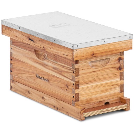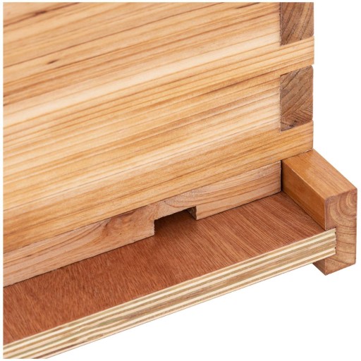 Ul został wykonany z jodły chińskiej o grubości 20 mm. Materiał ten łączy lekkość z wysoką wytrzymałością – zarówno w suchym, jak i wilgotnym środowisku. Pokrywa ze stali ocynkowanej oraz wysokiej jakości wykonanie z połączeniami na jaskółczy ogon sprawiają, że ul jest odporny na wpływy zewnętrzne. Natomiast w środku dzięki doskonałej izolacji panują optymalne warunki termiczne dla pszczół. Dzięki zagłębieniom z każdej strony możesz z łatwością używać, pielęgnować lub transportować ul.