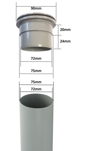 SZTUCER LEJ SPUSTOWY DO RUR 75 mm DO RYNIEN O PŁASKIM DNIE