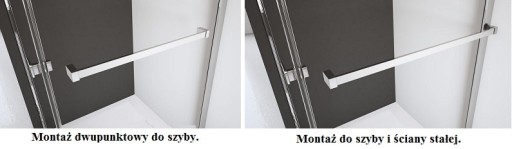 - Relingowy wieszak na ręcznik: Wieszak montowany jest do szyby za pomocą specjalnej techniki klejenia na etapie produkcji kabiny. Dlatego należy zamówić go równocześnie z kabiną prysznicową (opcja za dodatkową opłatą). Do wyboru dwa rodzaje mocowań. Zdjęcie poglądowe obok.