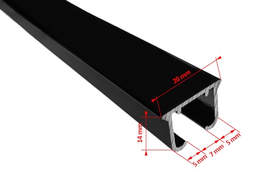 - Pojedyncza szyna aluminiowa w kolorze czarnym o długości 250 cm