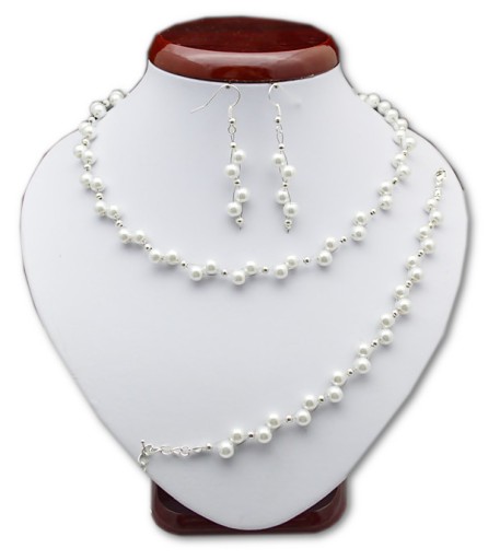 1 ВЕЧЕРНИЙ СВАДЕБНЫЙ НАБОР УКРАШЕНИЙ, белый ЖЕМЧУГ