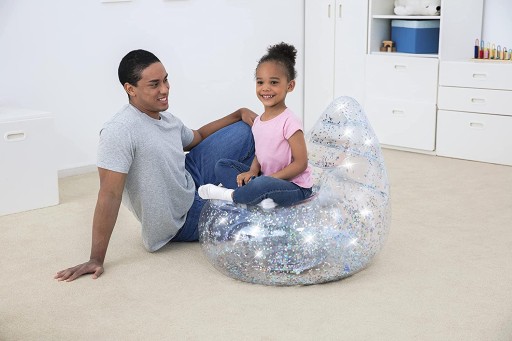 Błyszcz nawet podczas odpoczynku na krześle Air Chair Bestway® Glitter Dream™. To krzesło jest wykonane z przezroczystych materiałów i nasycone opalizującym srebrnym brokatem, a jego kosmiczny design rozjaśni każde pomieszczenie.