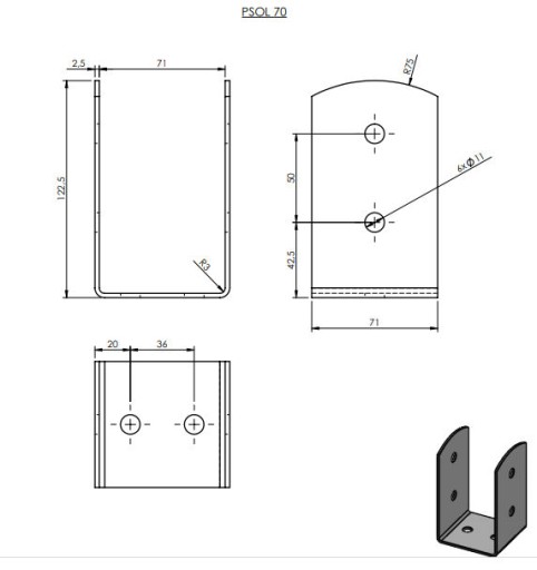 ПОДСОЕДИНЕНИЕ НА ВИНТОВУЮ СТОЙКУ PSOL 71x71 мм.