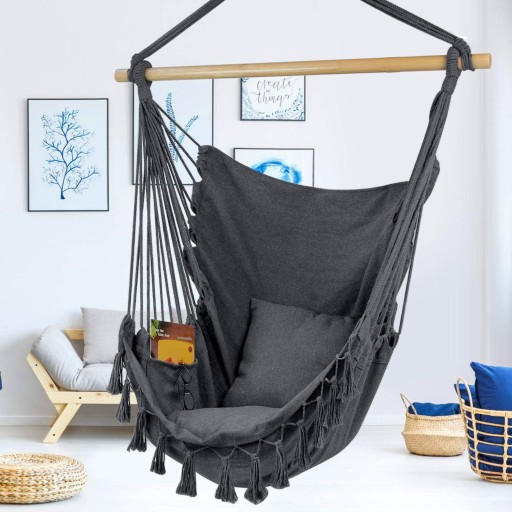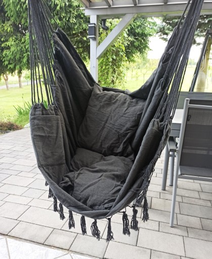 ☝️ Wykonany z wytrzymałego materiału (gruba bawełna z domieszką poliestru), a jego maksymalne obciążenie to 200 kg. Dostępny w pięknym, relaksującym kolorze (antracyt) w stylu Boho.