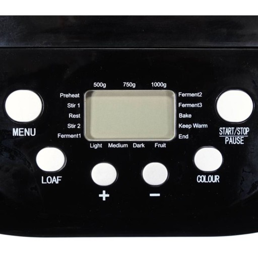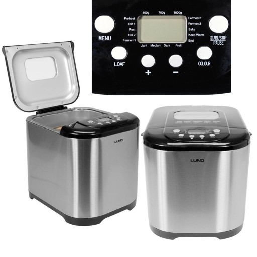 - Programy: chleb (pszenny, słodki, naturalny zakwasowy, francuski, pełnoziarnisty, szybki, bez cukru, wieloziarnisty, mleczny, bezglutenowy), ciasto (na słodko, surowe, zaczynowe), dopiekanie, jogurt